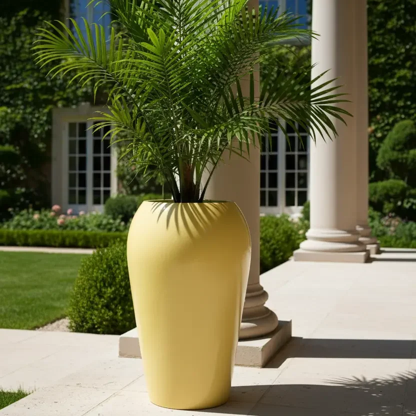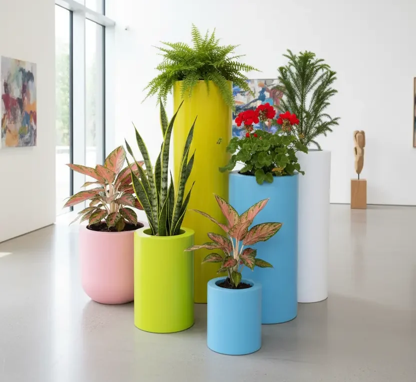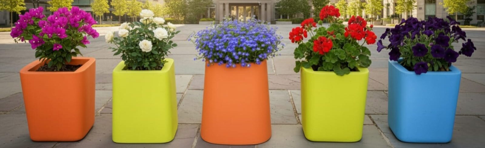Our planters are primarily made from high-quality Fiber-Reinforced Plastic (FRP). FRP is chosen for its superior strength, lightweight nature, and resistance to extreme weather, ensuring your pots are truly built to last.