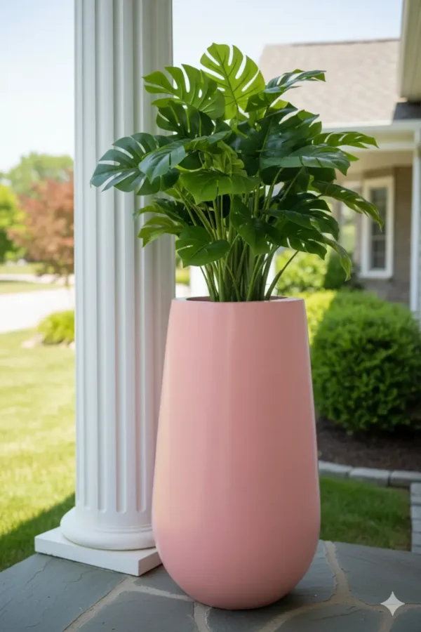 Despite their grand size, these planters are crafted from a high-quality, lightweight, and durable composite material, making them surprisingly manageable to position. Built to endure the elements, they are perfectly suited for both outdoor landscapes and indoor settings, resisting weather and wear while maintaining their beautiful finish.