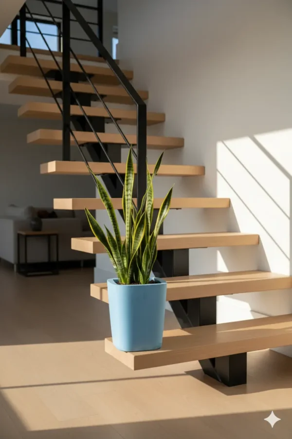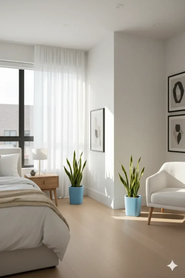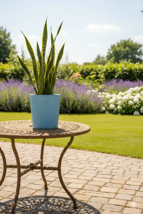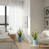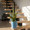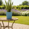 + Free ShippingA simple, modern plant pot with a geometric shape, likely a tapered square. It is painted a solid, matte light blue and sits on a wooden table.