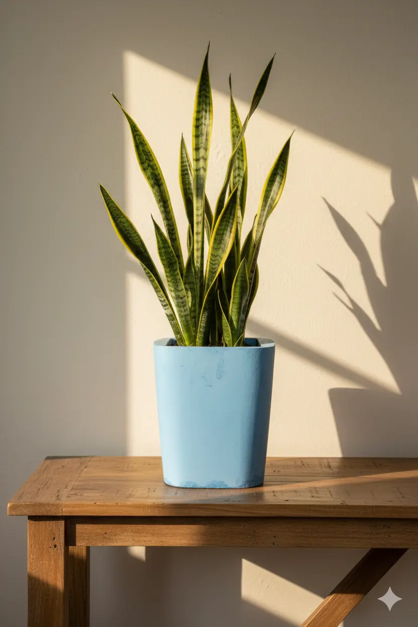 + Free ShippingA simple, modern plant pot with a geometric shape, likely a tapered square. It is painted a solid, matte light blue and sits on a wooden table.